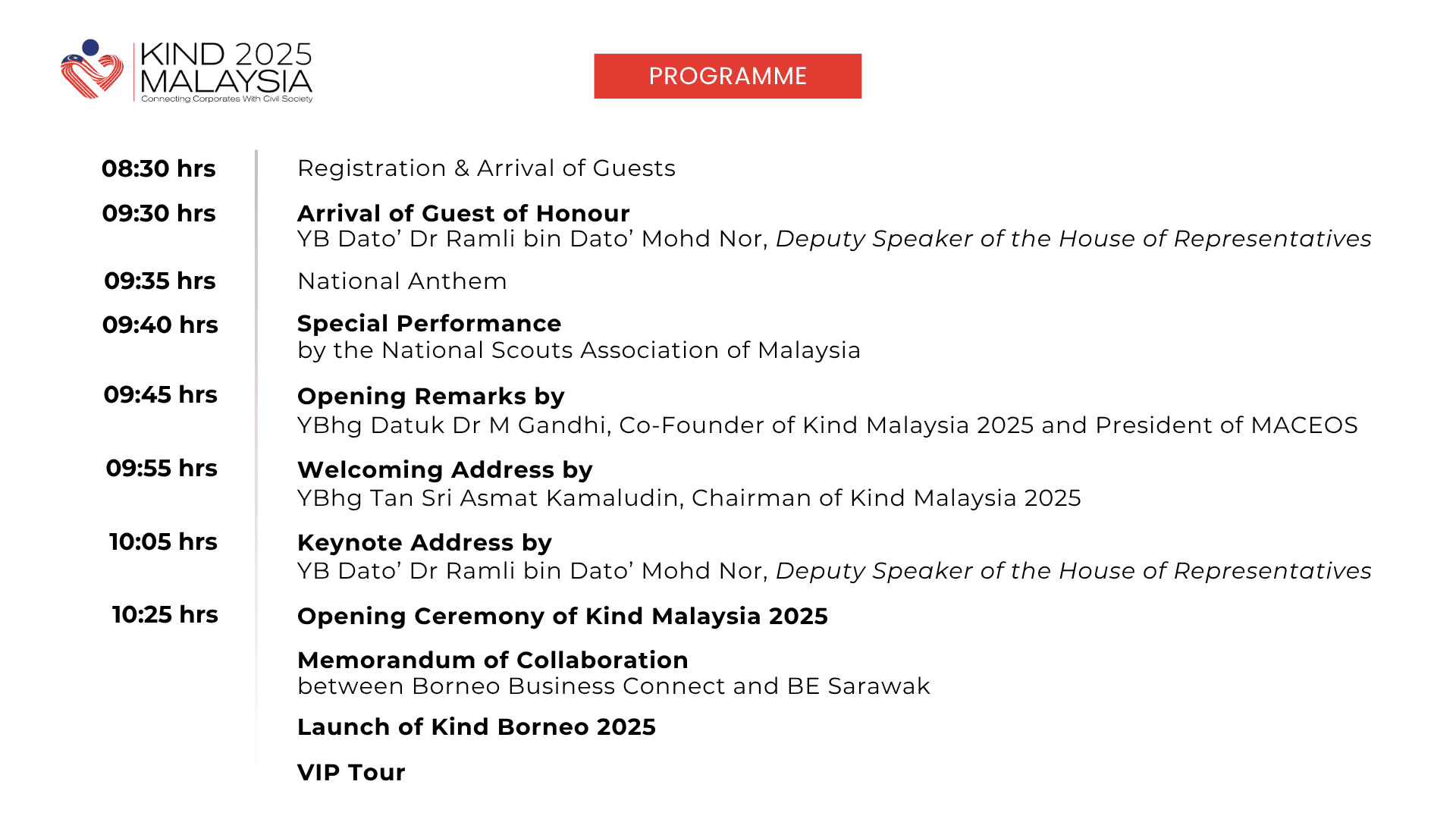 Kind Malaysia is a non-profit business event dedicated to fostering collaboration between corporations, non-governmental organisations (NGOs), social enterprises, and individuals in the spirit of kindness, community empowerment, and social responsibility.